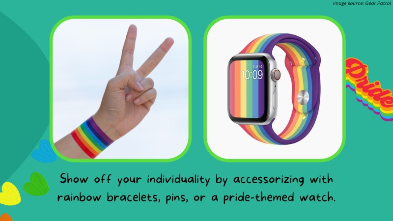 Show off your individuality by accessorizing with rainbow bracelets, pins, or a pride-themed watch.