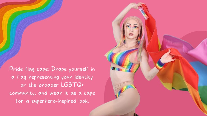 Pride flag cape: Drape yourself in a flag representing your identity or the broader LGBTQ+ community, and wear it as a cape for a superhero-inspired look.