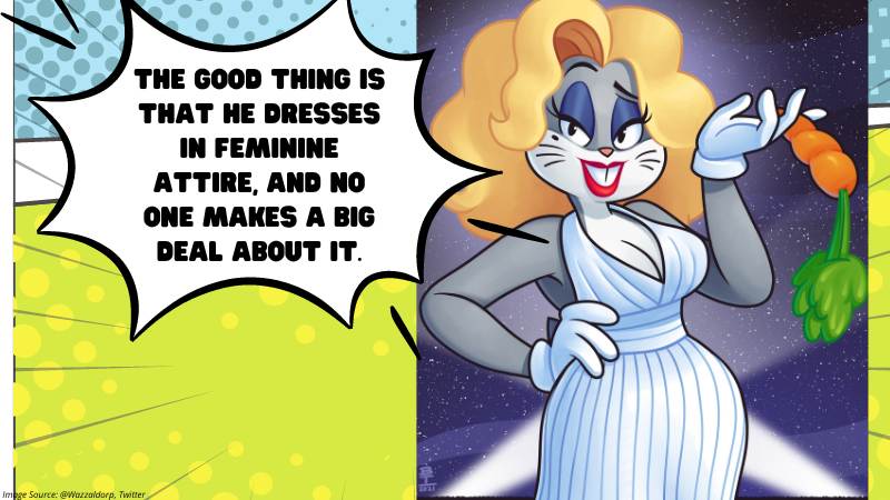 This one is a classic, and the character has been cross-dressing since the 1950s. It was a recurring comic relief in the past, but this was short-lived for the character. It didn’t take long for the warner brother to turn it into a positive depiction of cross-dressing. It’s not a disguise for the character or an ill-intentioned joke. Instead, it’s a personality trait that helps define the character. Bugs do that all the time, and recent cartoons expanded into that, adding new outfits to his wardrobe. The good thing is that he dresses in feminine attire, and no one makes a big deal about it. It’s a natural expression of his gender identity, which some speculate is non-binary. Everyone knows he has a feminine side, and he’s not ashamed of it, which can inspire our sisters to a great extent. It’s a great classic character with a lot to add.