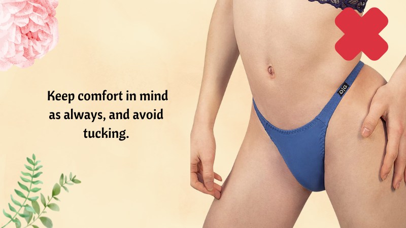For longer sessions, such as when we plan to spend the day en femme, it’s essential to wear something comfortable. With that in mind, I wouldn’t recommend tucking for this scenario. Rather than that, use panties made of elastic cotton or other malleable materials. Unless you plan to spend most of your day in underwear, there’s no point in choosing your panties based on how they look. Instead, your priority should be how comfortable they feel. Stretchable cotton is the ideal material, as it’s rather cheap and will easily accommodate your “manhood.”