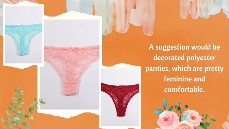 For most of us, the goal is to look pretty and feminine for no one but ourselves. Hence, I recommend you choose something you think looks great on you. A suggestion would be decorated polyester panties, which are pretty feminine and comfortable. They come in many different colors as well, which makes them suitable for a wide range of styles. I’d go with black or dark red for generalization purposes, but pink is another good choice. As for the decorations, the most common are tiny pearls or ribbons. They might require a bit of tucking to conceal the volume down there, but most of us don’t mind it when we are home alone.