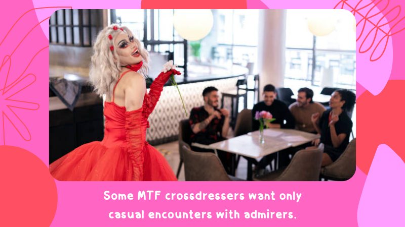 On the other hand, some MTF crossdressers want only casual encounters with admirers. They may look forward to dressing up in front of others and putting on shows designed to attract attention from members of their preferred sexual orientation. And for many, competition itself serves as motivation. They take pride in their appearance and demonstrating their skills, whether it’s through walking in heels or applying makeup.