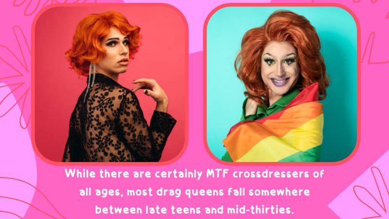 First, let’s consider age. While there are certainly MTF crossdressers of all ages, most drag queens fall somewhere between late teens and mid-thirties. In general, younger people may be more interested in dressing up for fun or personal fulfillment; older people may have less time or energy to devote to this activity, perhaps due to job or family responsibilities.