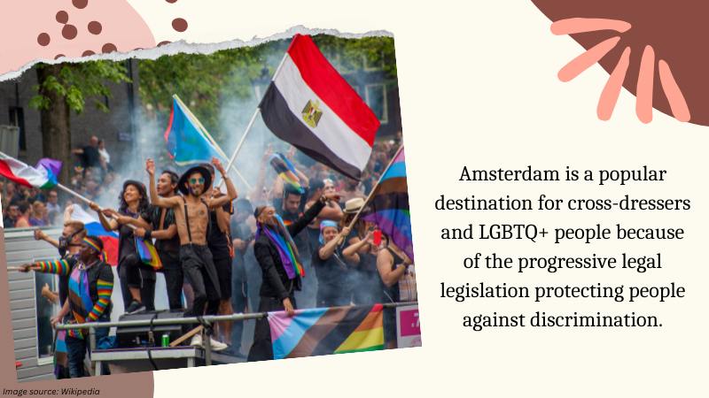 Amsterdam is a popular destination for cross-dressers and LGBTQ+ people because of the progressive legal legislation protecting people against discrimination.