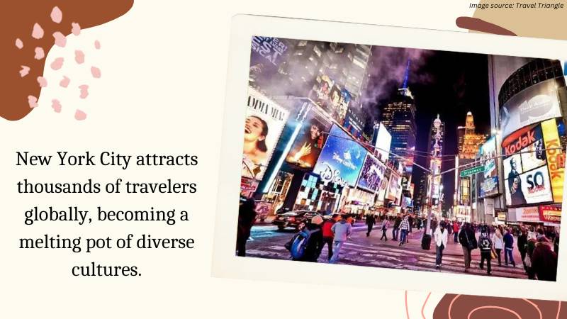 New York City attracts thousands of travelers globally, becoming a melting pot of diverse cultures.
