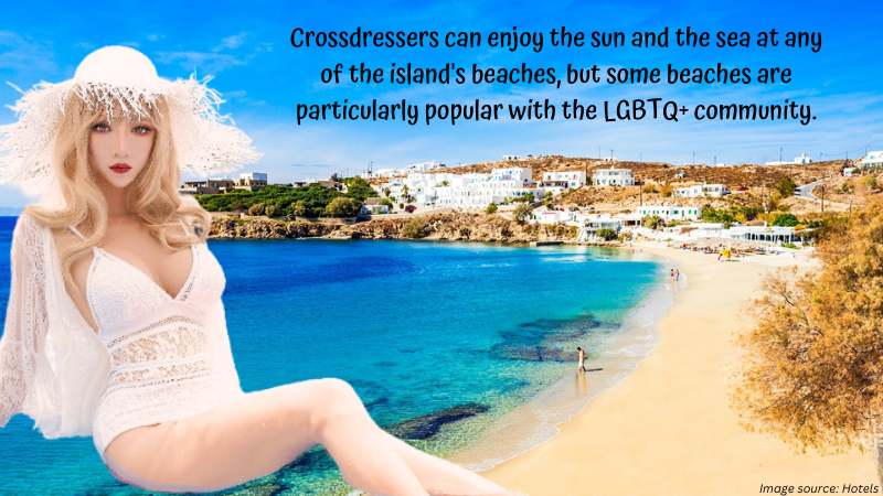 One of the highlights of Mykonos is its stunning beaches, which are famous for their crystal-clear waters and golden sand. People who like to wear clothes that are typically for the opposite gender can go to any beach on the island to have fun in the sun and water. However, some beaches are especially popular with people who are part of the LGBTQ+ community. Super Paradise Beach is one of the most well-known beaches for gay people around the world. It’s famous for its lively atmosphere, and people often sunbathe without clothes there.