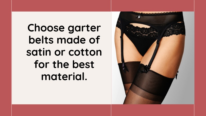 My stylist suggests choosing garter belts made of satin or cotton for the best material. These materials are light and breathable, and they would not make you feel too hot down there because they are thin.