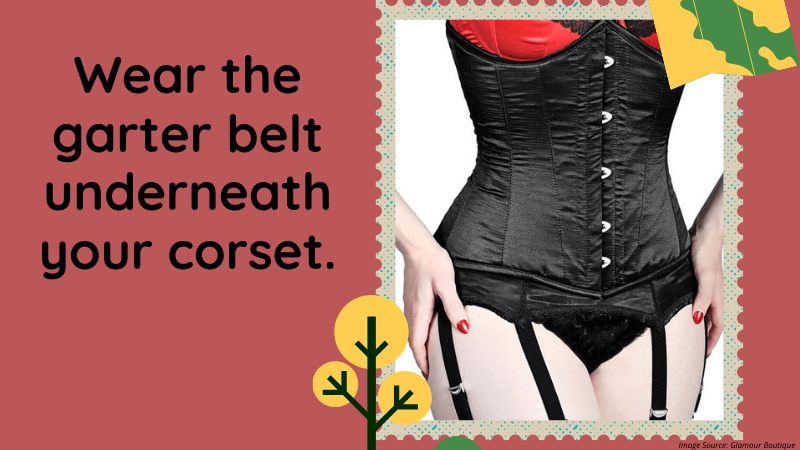 - You must wear the garter belt underneath your corset, and the corset should be longer than the belt to hide it.