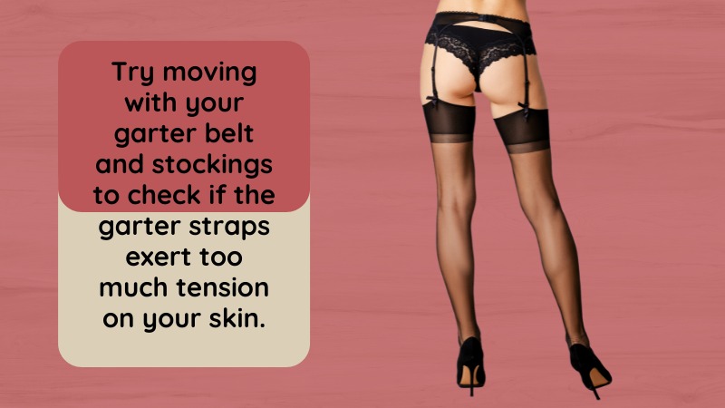 Before readjusting, try moving with your garter belt and stockings to check if the straps exert too much tension on your skin. If they do, you can readjust the garter straps accordingly.