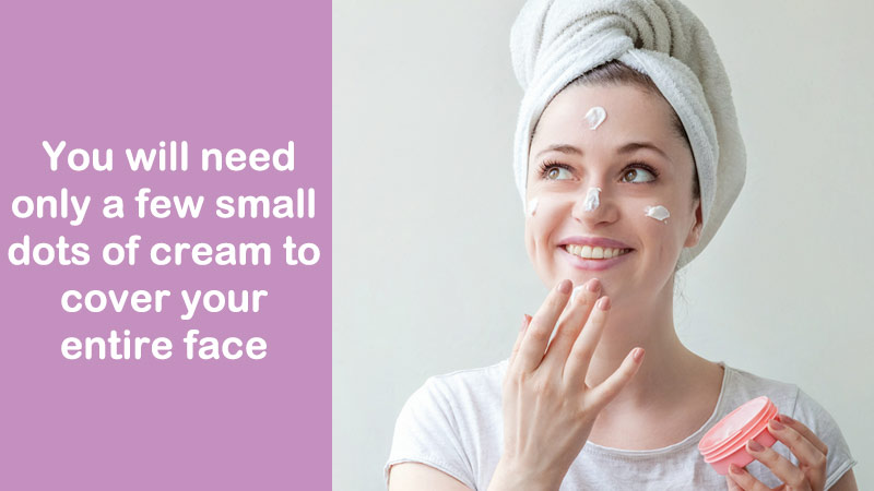 You will need only a few small dots of cream to cover your entire face. Rub it gently in small circles and let it dry.