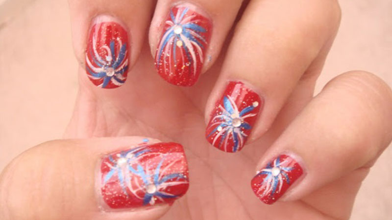 Another great idea if you are looking for a holiday-inspired nail art is fireworks.