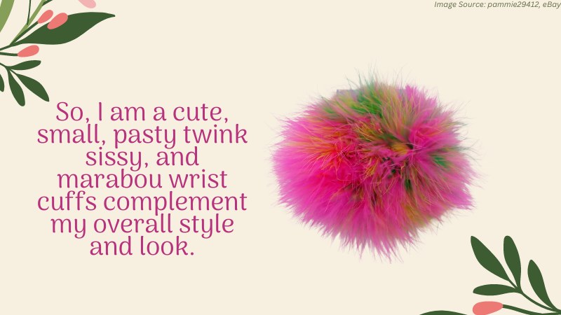 So, I am a cute, small, pasty twink sissy, and marabou wrist cuffs complement my overall style and look.