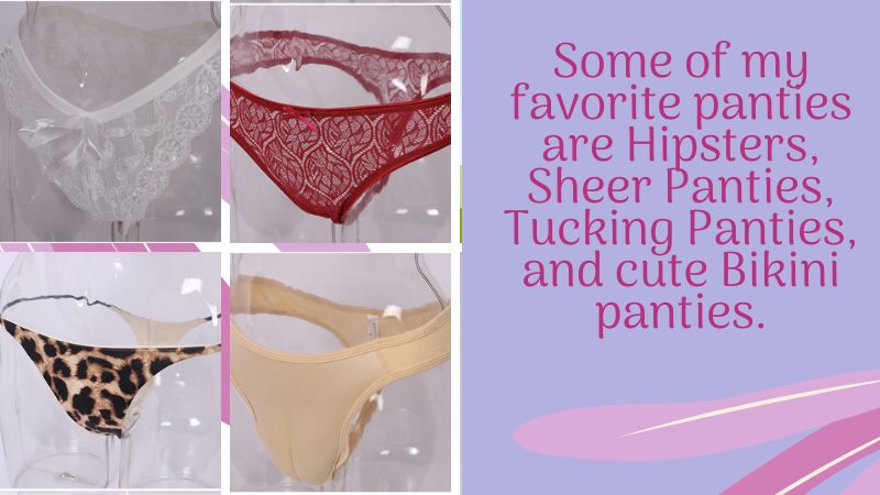 Some of my favorite panties are Hipsters, Sheer Panties, Tucking Panties, and cute Bikini panties.