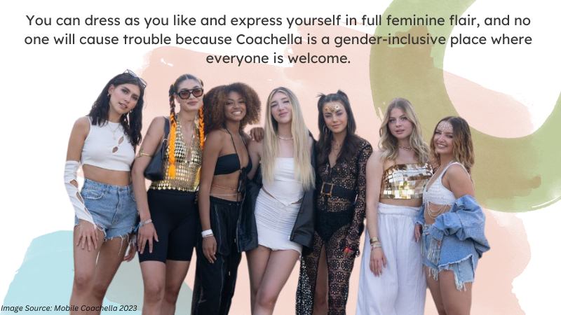 You can dress as you like and express yourself in full feminine flair, and no one will cause trouble because Coachella is a gender-inclusive place where everyone is welcome.