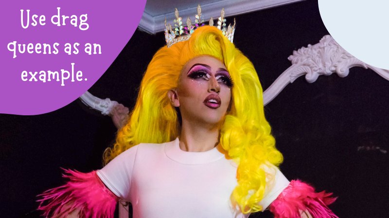 Although it’s not a precise comparison, you may use drag queens as an example.