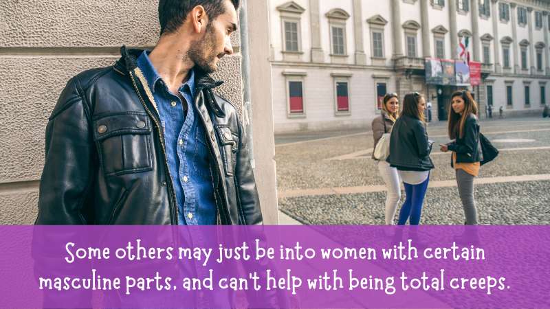With that in mind, some others may just be into women with certain masculine parts and can’t help with be total creeps.