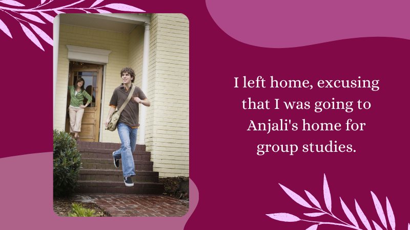 I left home, excusing that I was going to Anjali’s home for group studies. After this, I reached Anjali’s home, and the moment I entered her room it was glamour all around me. Her friends and sister were getting ready; some girls were doing makeup, some were checking their fits, and others were lounging around. The scene was like a dream come true for me.