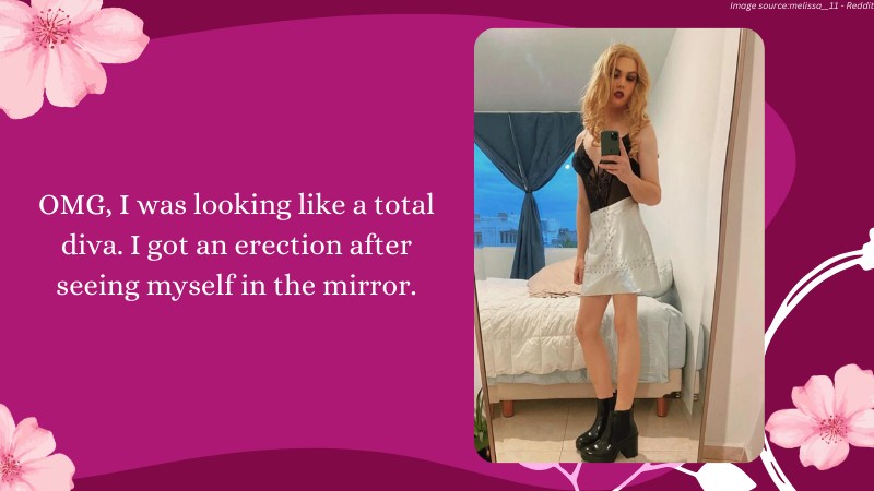 She gave me a red lacy bra, matching panty, and a red figure-hugging gown to wear. The gown was deep-necked, revealing my cleavage. Then, a hot necklace and rings on my fingers. OMG, I was looking like a total diva. I got an erection after seeing myself in the mirror.