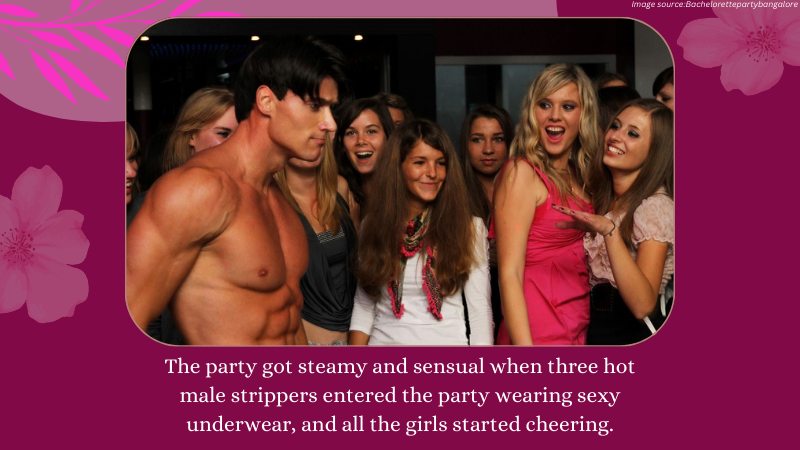 After reaching the party place, I felt so relieved as there were girls only, and some of them even gave me compliments. Then I started enjoying the party and drinking. The party got steamy and sensual when three hot male strippers entered the party wearing sexy underwear, and all the girls started cheering.