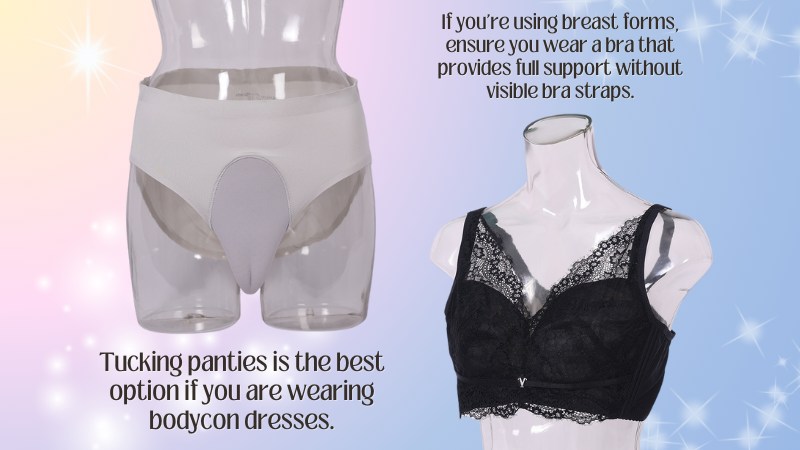 Another thing that is very important for you as a crossdresser is picking the correct undergarments. You see, most of the prom dresses are slim fit and figure-hugging, so you have to be very cautious about what you are wearing underneath to conceal masculine features.