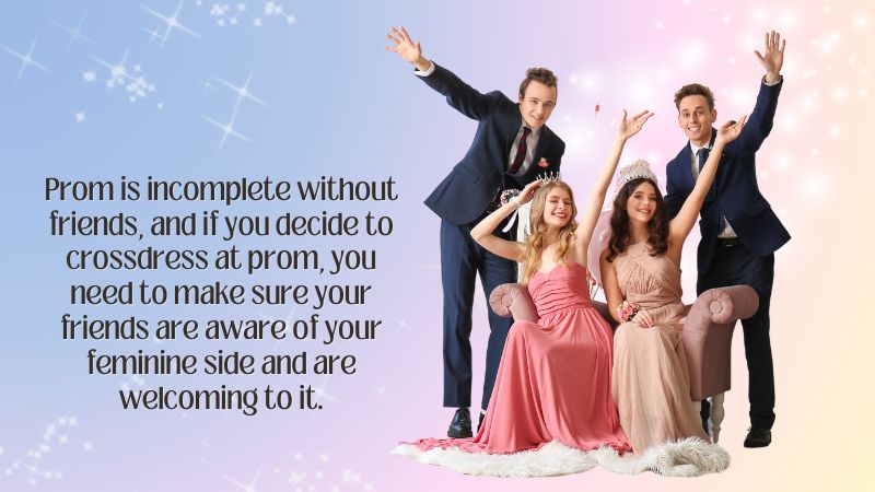 Prom is incomplete without friends, and if you decide to crossdress at prom, you need to make sure your friends are aware of your feminine side and are welcoming to it.