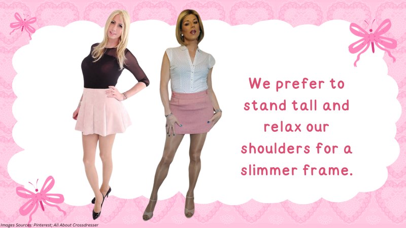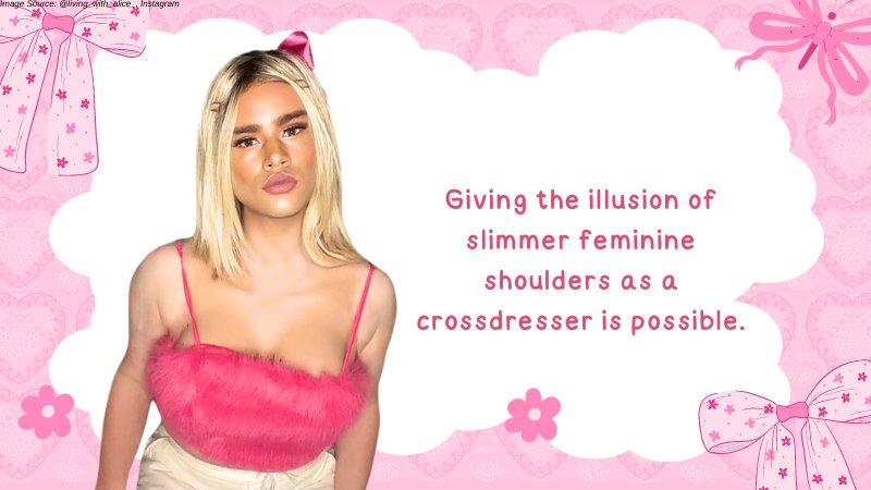 Shoulders, broad or slim, are all beautiful. However, as crossdressers, slimming or giving the illusion of small shoulders is a tip to aid in our crossdressing. Styling, posture, and makeup are a few tricks in our bags to help us be more feminine in our cross-dressing.