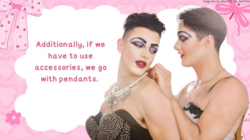Avoiding large, chunky earrings in favor of dainty drop earrings also ensures that we are at our best while cross-dressing. Bulky earrings lend credence to ‘a lot’ going on in our shoulder region, which we hate as feminine crossdressers.