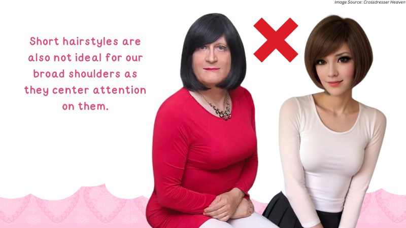 Short hairstyles are also not ideal for our broad shoulders as they center attention on them.