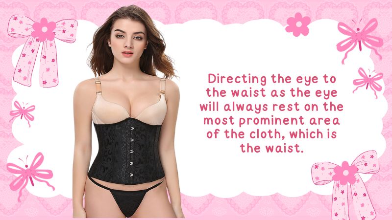 - Directing the eye to the waist as the eye will always rest on the most prominent area of the cloth, which is the waist.