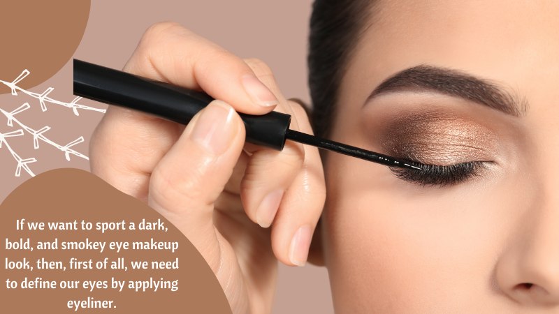 This is an important step that we can’t skip. If we want to sport a dark, bold, and smokey eye makeup look, then, first of all, we need to define our eyes by applying eyeliner. The beauty of wearing eyeliner is that it instantly makes our eyes appear more extensive, more comprehensive, and brighter, so don’t miss out on it.