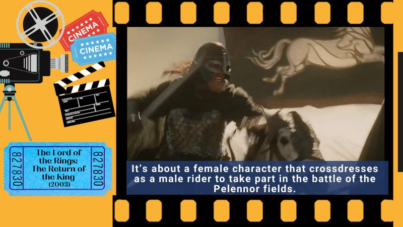 It’s about a female character, Éowyn of Rohan, who crossdresses as a male rider in order to take part in the battle of the Pelennor fields.