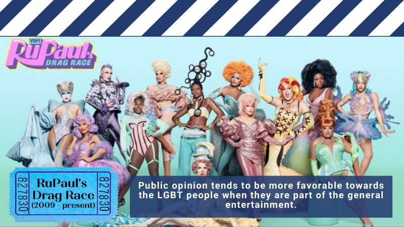 Public opinion tends to be more favorable towards LGBT people in general when they are part of the general entertainment.
