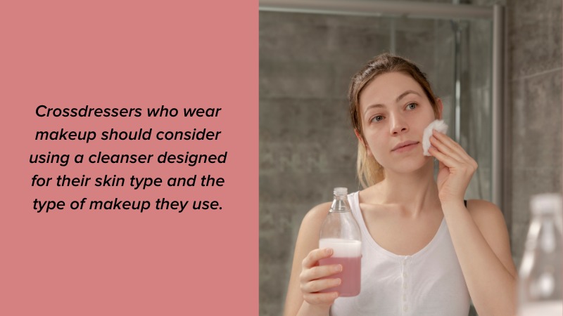 Crossdressers who wear makeup should consider using a cleanser designed for their skin type and the type of makeup they use. For instance, oil-based makeup removers are ideal for removing heavy and waterproof makeup. If you’re a busy crossdresser who wears makeup when working, you may want to consider double cleansing to ensure that all of your makeup is removed. This involves using an oil-based cleanser or micellar water to dissolve your makeup before using a traditional cleanser.