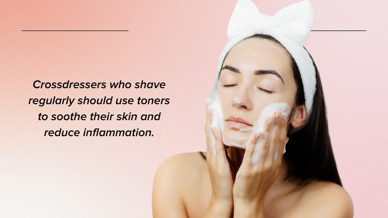 Crossdressers who shave regularly should use toners to soothe their skin and reduce inflammation. To use a toner, start by shaking the bottle to mix the product, then apply it to a cotton pad. Gently sweep the cotton pad over your face and neck, avoiding the eye area. Allow the toner to dry before applying any other products, such as moisturizer or sunscreen. When choosing a toner, look for one that’s suitable for your skin type. If you have oily skin, choose a toner that’s designed to control oil production. If you have dry or sensitive skin, look for a toner that’s hydrating and gentle.