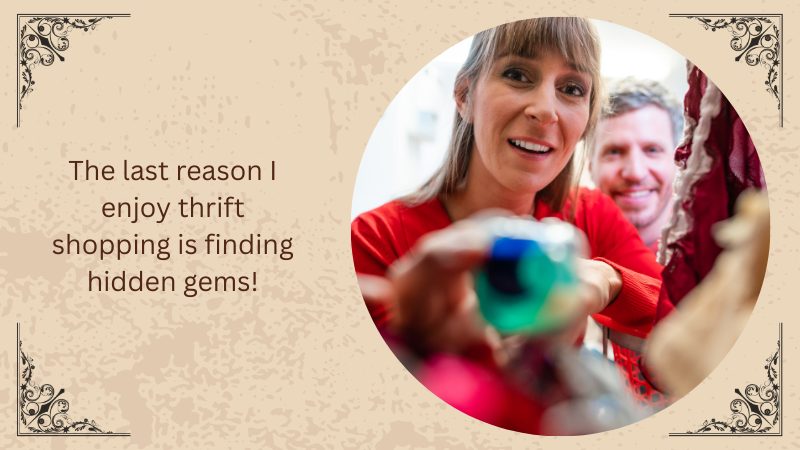 The last reason I enjoy thrift shopping is finding hidden gems! It could be a pretty dress that costs so much more or cute shoes that are actually in your size! You just never know what you’re going to find there until you look, and it is so exciting.