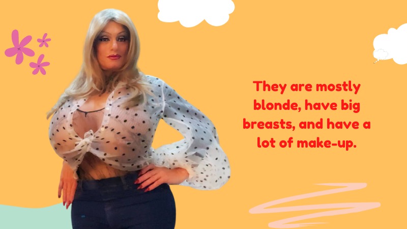 Bimbo femboys are majorly attractive ladies but with vacuous behavior. They are mostly blonde, have big breasts, and have a lot of make-up. They always like to go shopping with their friends and go to the mall. Theese femboys want to wear sexy clothes and are very confident about themselves.