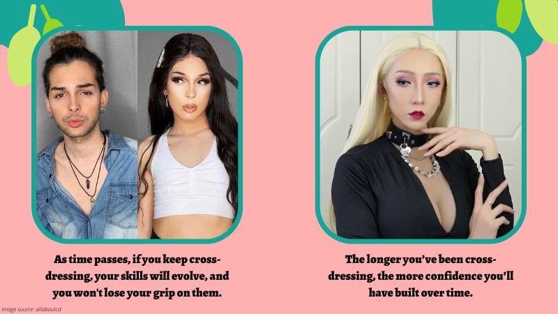 You gain experience and perfect your skills through practice. This is how you get good with most feminization techniques and how they become more effective. As time passes, if you keep cross-dressing, your skills will evolve, and you won’t lose your grip on them. You’ll be able to do your makeup more efficiently in a more convincing way and endure shapewear. Besides that, you’ll get used to feminine mannerisms and body language. You may also perfect your voice acting to mimic a convincing feminine voice, which is not an easy thing to accomplish.