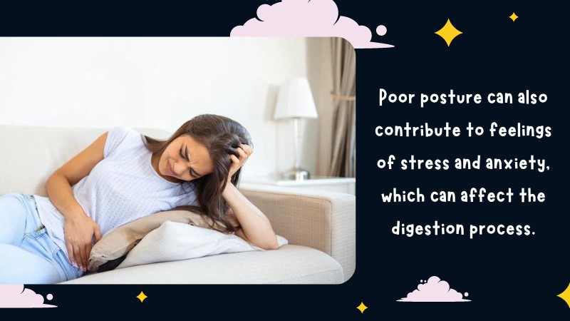 Poor posture, such as slouching or rounding the shoulders, can compress the abdominal organs and make it more difficult for food to pass through the digestive system. Poor posture can also contribute to feelings of stress and anxiety, which can affect the digestion process. This can lead to issues such as bloating and constipation. And who wants to look bloated? It’s an automatic no-no for sisters.