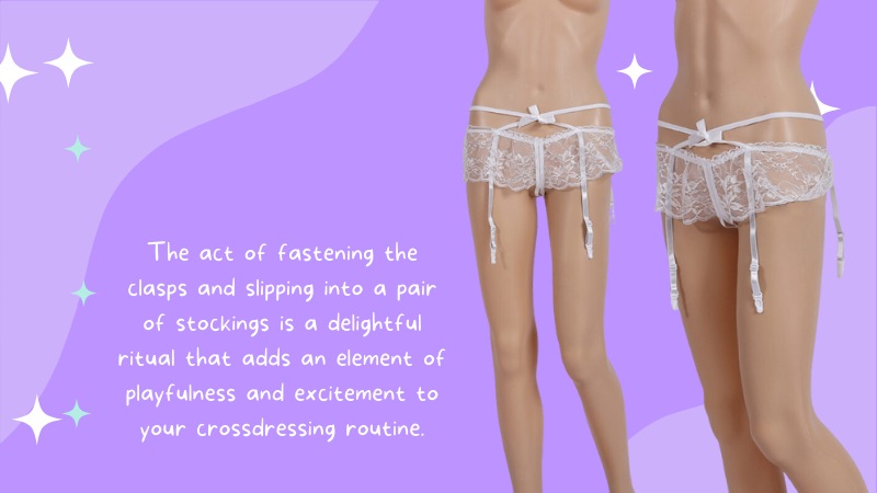 The act of fastening the clasps and slipping into a pair of stockings is a delightful ritual that adds an element of playfulness and excitement to your crossdressing routine.
