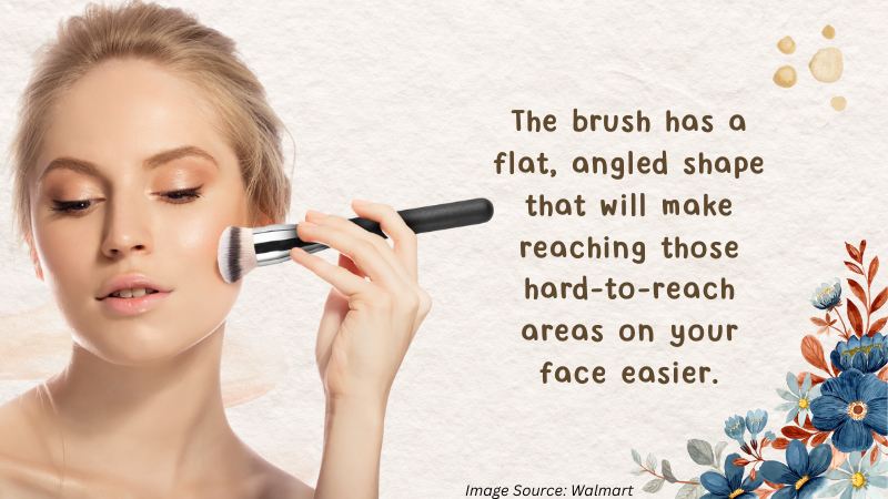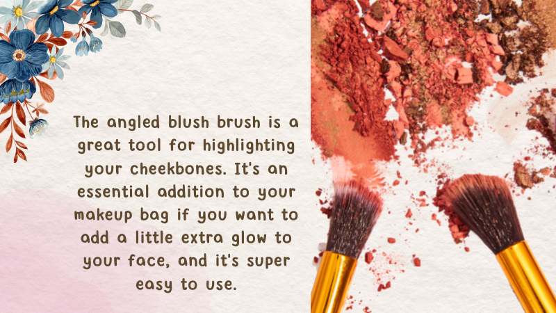 An angled brush is meant to highlight your cheekbones. The brush has a flat, angled shape, making reaching those hard-to-reach areas on your face easier. The bristles are soft, so you can use this with any product without worrying about scratching or damaging your skin.