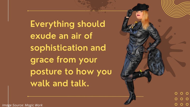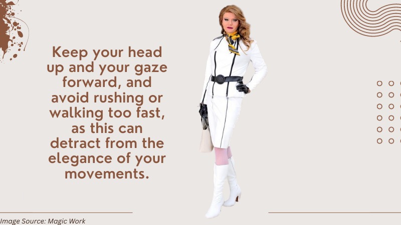 Starting with your posture, it’s essential to maintain a straight and confident stance. Think of yourself as a queen holding court, and stand up tall with your shoulders back and your chin up. Hold your arms at your sides or carry a clutch for a sophisticated touch. Avoid slouching or hunching your shoulders, making you look less confident and elegant.