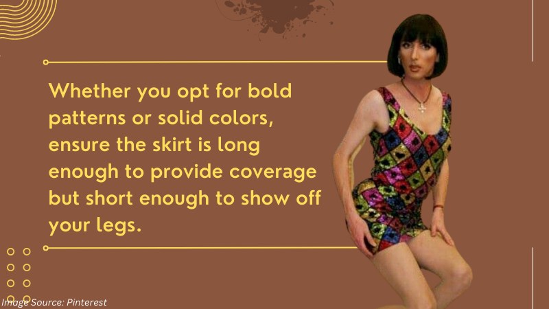 Go for a full, flouncy, or tight pencil skirt, depending on your mood and the occasion. Whether you opt for bold patterns or solid colors, ensure the skirt is long enough to provide coverage but short enough to show off your legs.