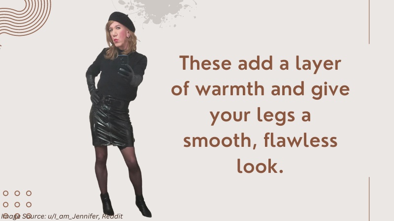 Complete your look with a pair of stockings or tights. These add a layer of warmth and give your legs a smooth, flawless look. Choose a color that complements your outfit, such as nude or black.