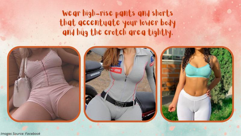 Wear high-rise pants and shorts that accentuate your lower body and hug the crotch area tightly.