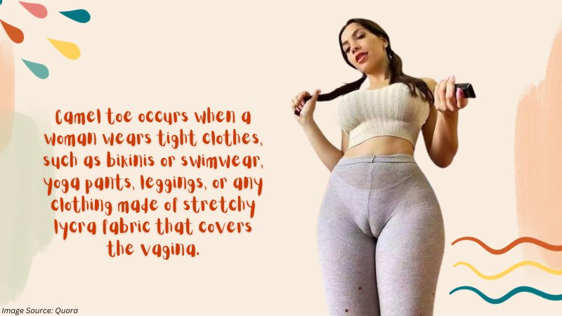 Camel toe occurs when a woman wears tight clothes, such as bikinis or swimwear, yoga pants, leggings, or any clothing made of stretchy lycra fabric that covers the vagina.