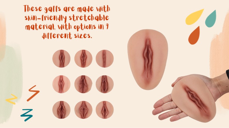 These gaffs are made with skin-friendly stretchable material, with options in 9 different sizes.
