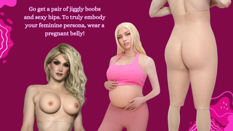 Go get a pair of jiggly boobs and sexy hips. To truly embody your feminine persona, wear a pregnant belly!