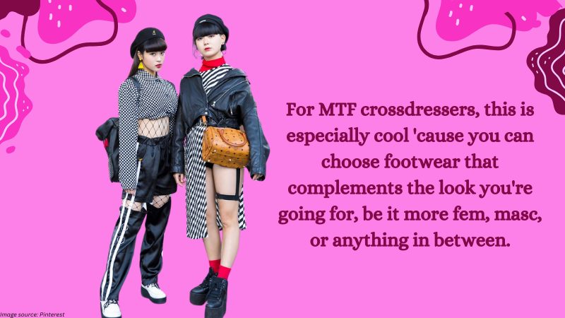 For MTF crossdressers, this is especially cool ’cause you can choose footwear that complements the look you’re going for, be it more fem, masc, or anything in between.