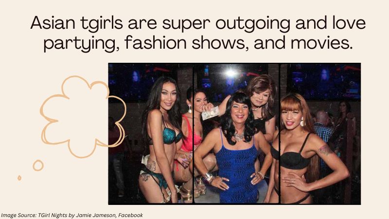 Plus, Asian tgirls are super outgoing and love partying, fashion shows, and movies, so I feel like this quality of Asian tgirls makes them so lovable.