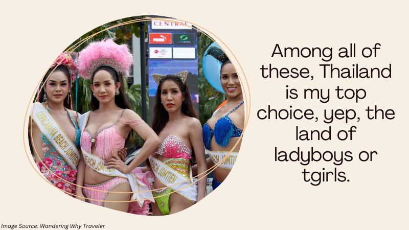 Among all of these, Thailand is my top choice, yep, the land of ladyboys or girls.